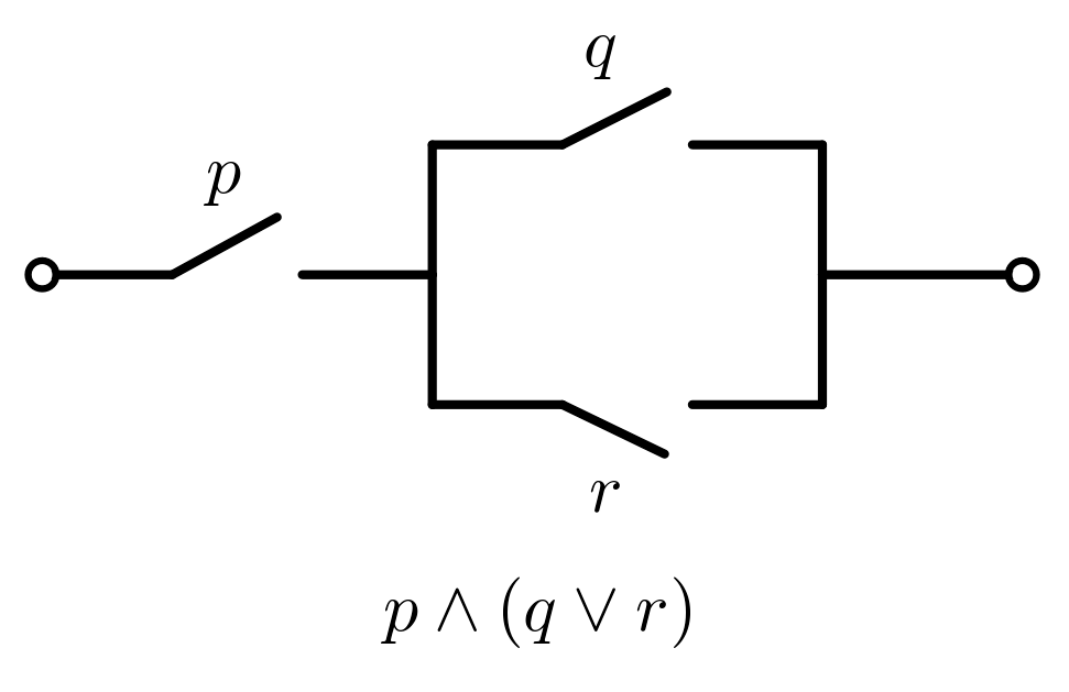 Example: the logic circuit associated with the compound proposition p ∧ (q ∨ r) is: