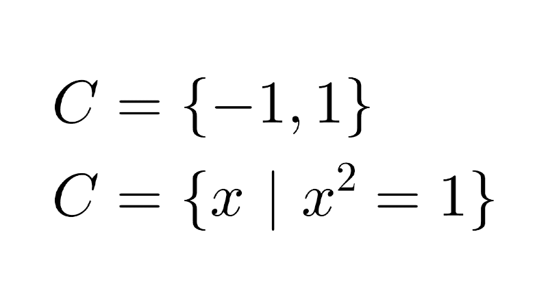 - C = { x | x is odd ∧ 1 ≤ x ≤ 9 }
